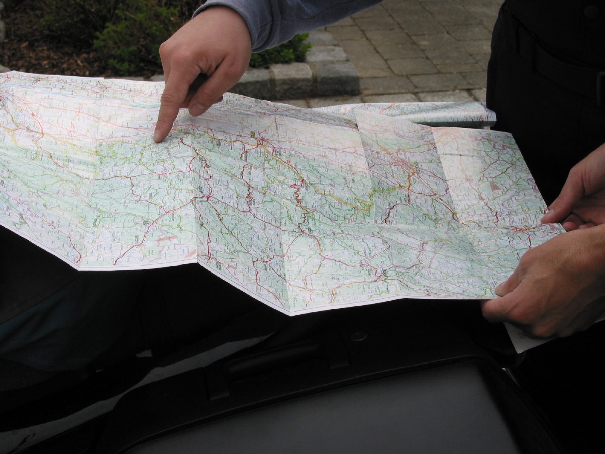 Und um eine Tour zu planen, nutzen wir folgenden einfachen Algorithmus: Lege Startort, Zielort und mehrere Zwischenstationen fest. Finde dann den Weg, der zwei aufeinanderfolgende Orte mit möglichst vielen Kurven verbindet.
